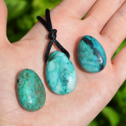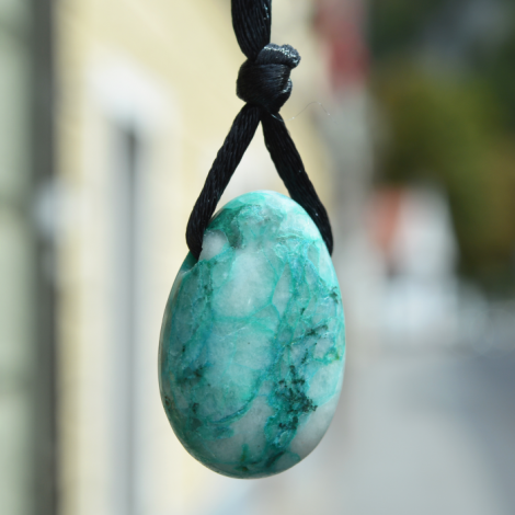 The CHRYSOCOLLA pendant is an energy jewelry that emits the healing powerof crystal, removes blockages, raises life energy.