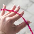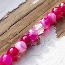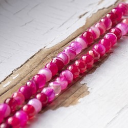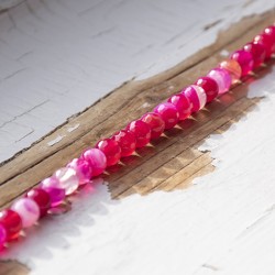 Quality pink agate crystal beads strung on a string, suitable for jewellery making or further creation.