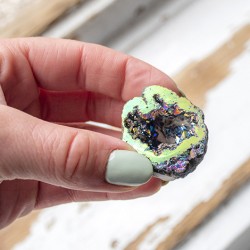 Titanium aura or rainbow aura is clear quartz that is coated with titanium in the ionisation process. This beautifully coloured crystal has high energy potential and is very useful for removing energy blockages, while also clearing and balancing all chakras. It helps us find our inner strength and guides us to reach our highest potential. It frees us from negative emotions and encourages us to think more optimistically.