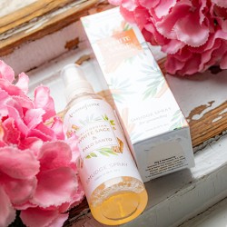 The natural White Sage and Palo Santo spray gently cleanses the space and wraps it in a fresh, sweet scent.