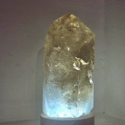A lamp made out of clear quartz brings fresh energy into our space. The positive atmosphere and gentle light emitted by the stone lightning crystal fills the space with the energy of inner strength and stability.
