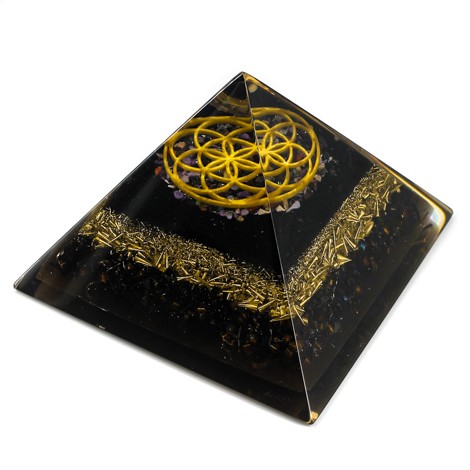 TIGER'S EYE Orgonite Pyramid flower of life - grey
