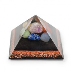 Orgonite pyramid with crystals: Amethyst, Citrine, Carnelian, Red Jasper, blue lace agate, Sodalite, green aventurine.