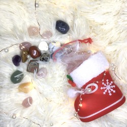 Komplet vsebuje 15-20 kristalov + kartico z informacijami o kristalih (v angleškem,nemškem jeziku) +darilno embalažo Božičkov škorenj.