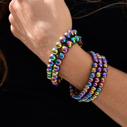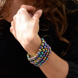 Zapestnica iz mavričnega hematita s svojimi barvami vseh sedmih čaker nudi popolno ravnovesje. S svojim igrivim sijajem prinese optimizem in veselje.
