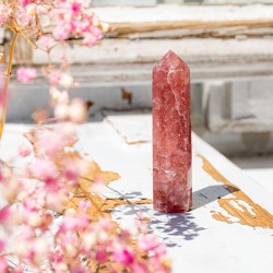 Strawberry Quartz, je kristal rožnate barve, znan kot kamen ljubezni in radosti. Njegova posebna energija spodbuja optimizem, notranji mir in hvaležnost. Je idealen kristal za vse, ki želijo vzpodbuditi ljubezen do sebe, izboljšati odnose z drugimi in vnesti več topline v svoje življenje.